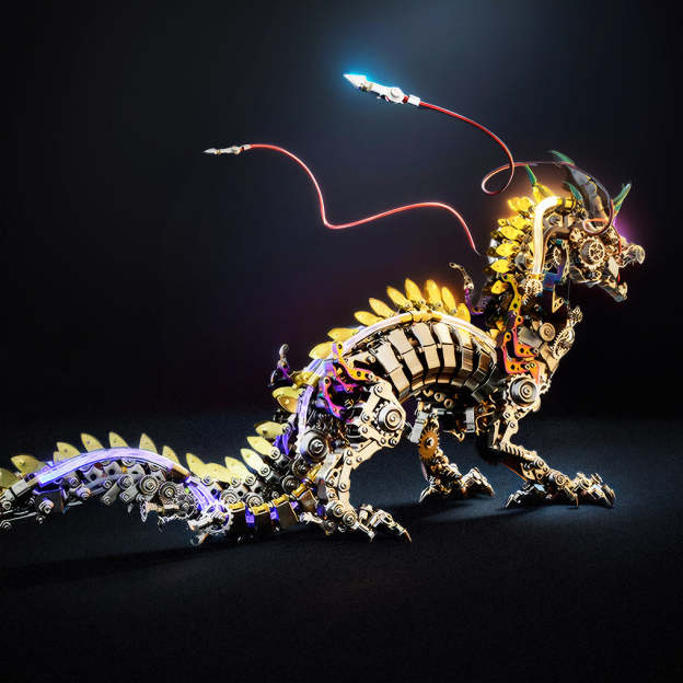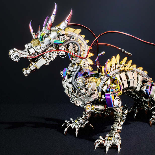 Science and Technology Tide Play:This DIY metal model of a mechanical dragon, measuring 50cm in length, embodies a captivating cyberpunk fairy aesthetic. Its stunning visuals and impressive design showcase the fusion of culture and technology, making it not only a metal assembly puzzle, but also a valuable addition to any science and technology collection.