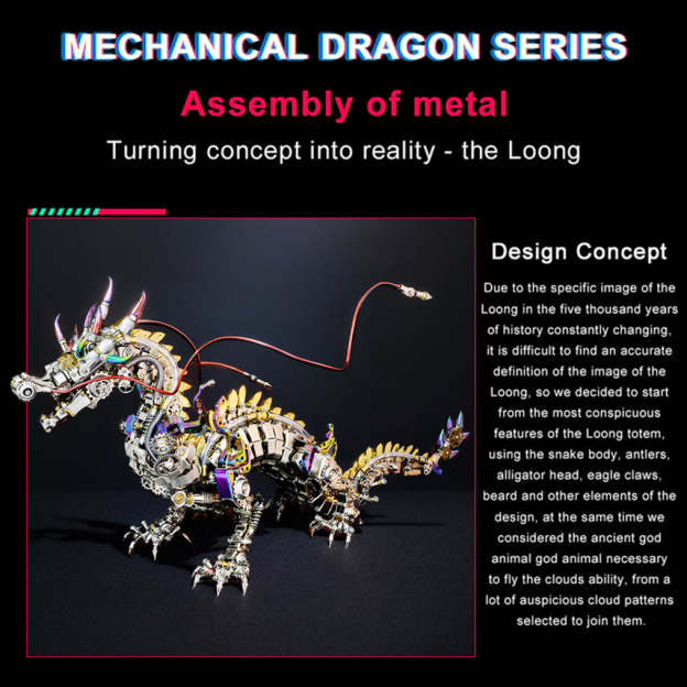 DIY 3D Mechanical Dragon Metal Model Puzzles for Adults Building Block Set Toys